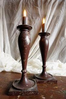 19E EEUWSE BESCHILDERDE TINNEN KANDELAARS